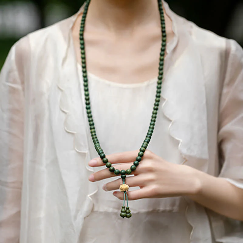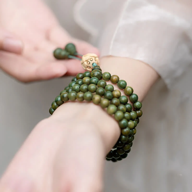 108 Mala Beads Green Sandalwood Boxwood Lotus Positive Bracelet