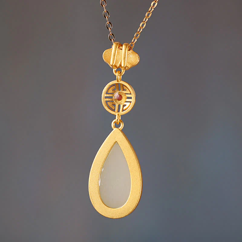 Enhance your style and well - being with this charming 925 sterling silver white jade water drop chain necklace and pendant bracelet. Made from long - lasting silver, it embodies the qualities of calmness, balance, and protection from bad influences. The beautiful white jade center adds blessings of happiness, luck, and harmony, while shielding the wearer and their dear ones from negative energies. Embrace the peace of silver and the kindness of white jade for a harmonious and protected aura.💕