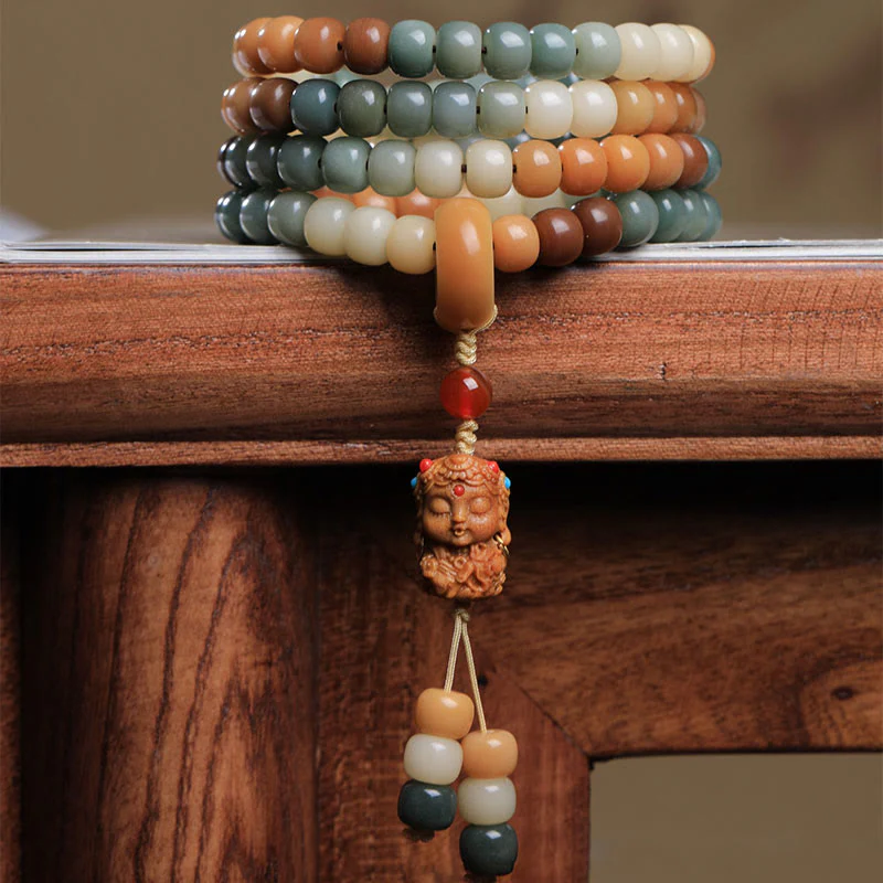 • 108 Mala Beads Gradient Bodhi Seed Buddha Engraved Peace Harmony Bracelet