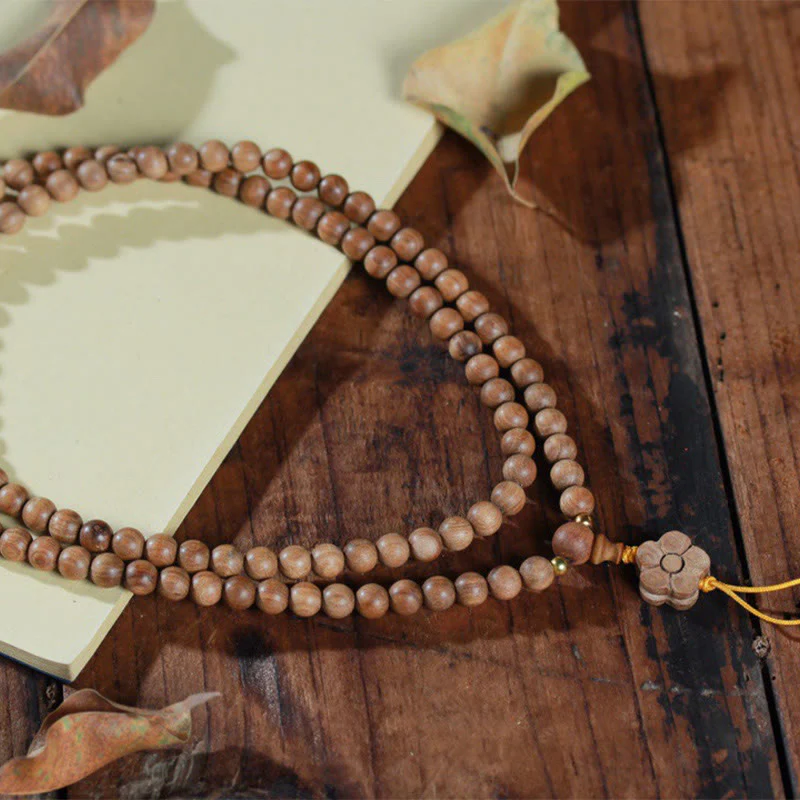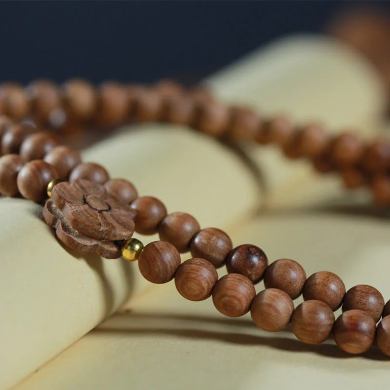 • Sandalwood Plum Blossom Charm Healing Mala Bracelet