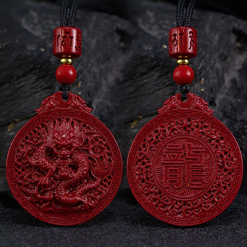 • Year of the Dragon Natural Cinnabar Dragon Protection Necklace Pendant