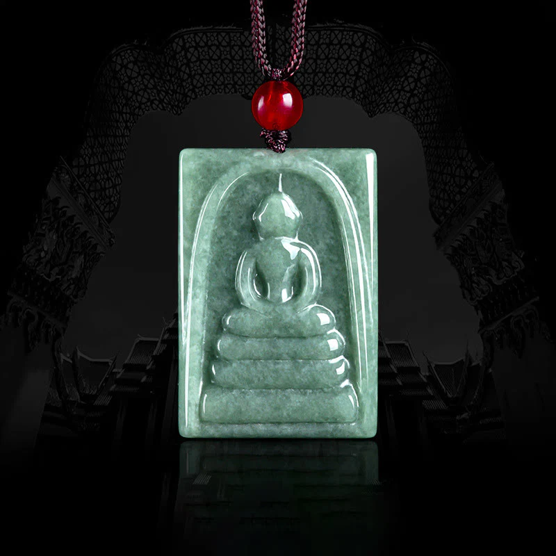 Square Jade Amulet String Necklace Pendant has a square jade centerpiece engraved with the Formless Buddha, representing prosperity and spiritual equilibrium. The detailed design showcases the harmony between material wealth and inner tranquility. This significant pendant is firmly attached with a sturdy string, acting as a protective charm and a reminder of the journey towards personal and financial growth.