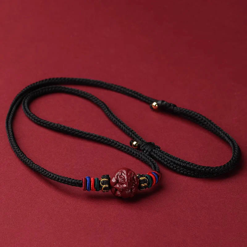 • Cinnabar Chinese Zodiac Black String Blessing Necklace Pendant