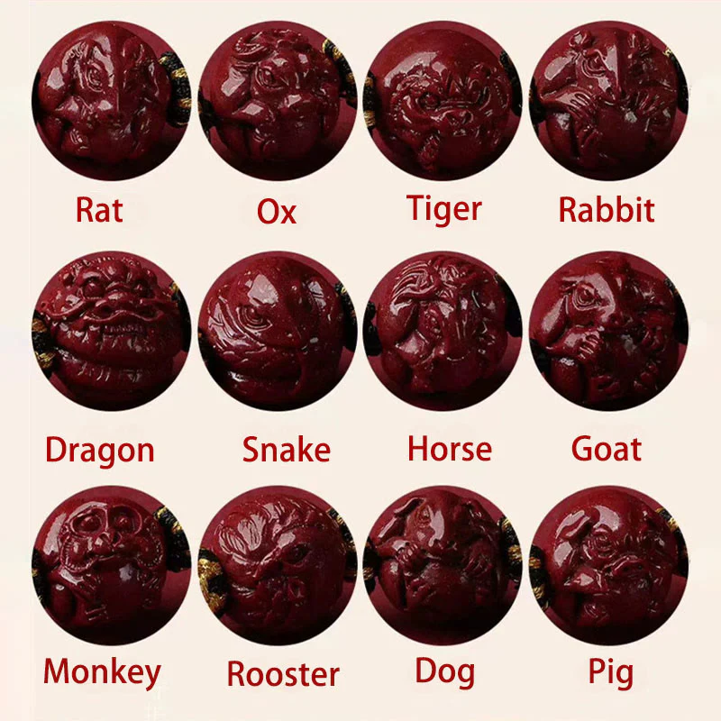 Cinnabar Chinese Zodiac Necklace Pendant features the Chinese Zodiac intricately carved on bright cinnabar. Combined with a tough black string, this pendant represents blessings and protection. The deep red color of cinnabar reflects tradition and cultural value, making it a significant accessory. Light but strong, this pendant acts as a symbol of good luck and a nod to classic Chinese craftsmanship.