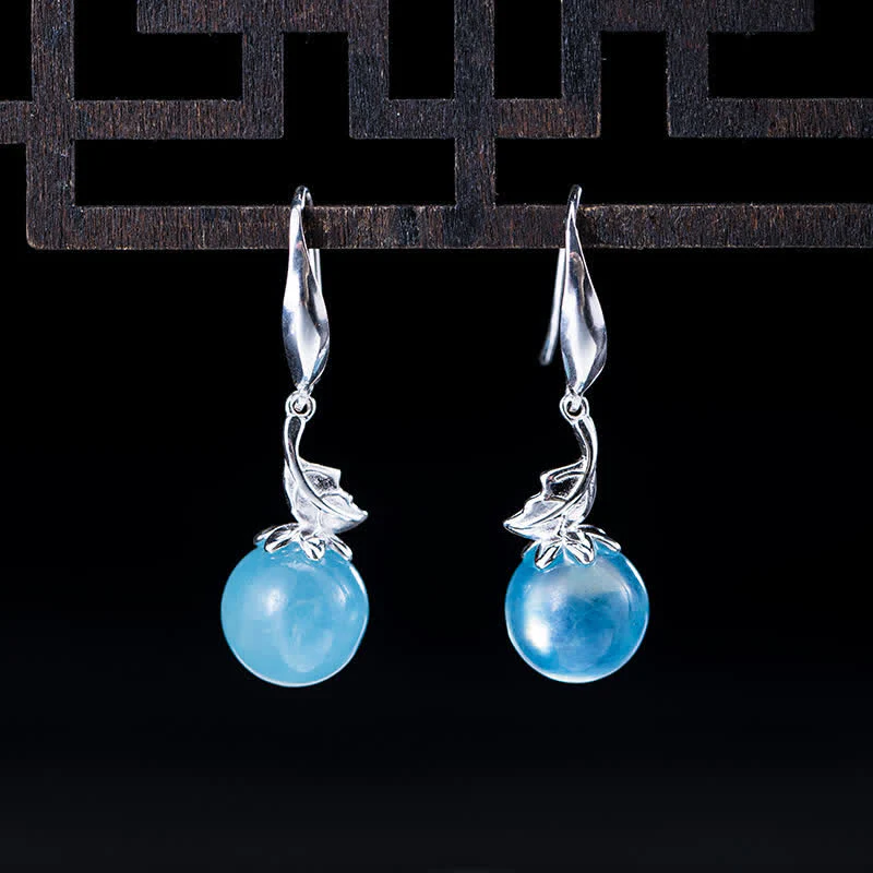 • Leaf Earrings Size: 34*10mm, Aquamarine Beads Size: 10mm