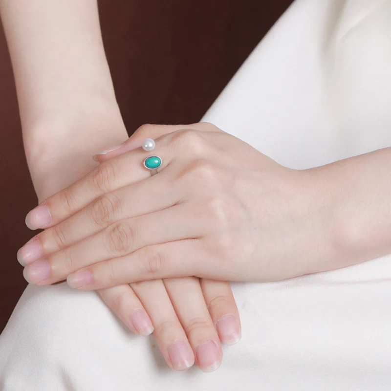• Ring Size: 54 - 60mm(Adjustable); Pearl 6mm, Turquoise 5*7mm, Width 2mm, Thickness 1mm