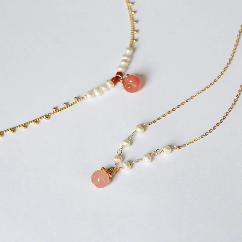 • Gold-plated Copper Natural Agate Pearl Positive Jewelry Set