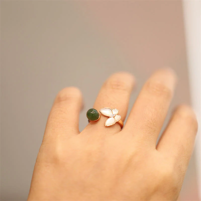 • Natural Cyan Jade Tridacna Stone Butterfly Bead Healing Jewelry (Necklace, Pendant, Ring, Earrings)