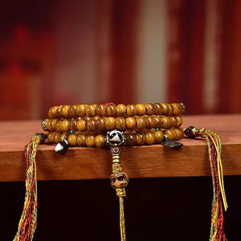• Tibetan 108 Beads Yak Bone Dzi Bead Evil-Repelling Mala