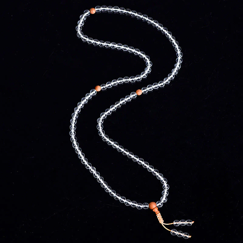108 Mala Beads Natural Stone White Crystal Sandalwood Healing Bracelet