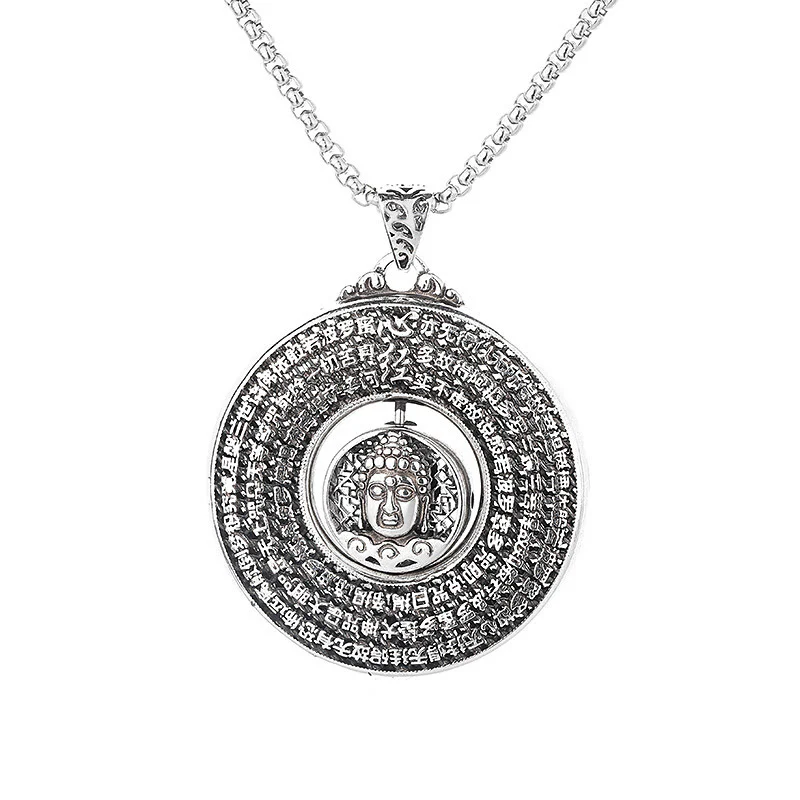 • Heart Sutra Buddha Carved Peace Buckle Design Rotatable Necklace Pendant