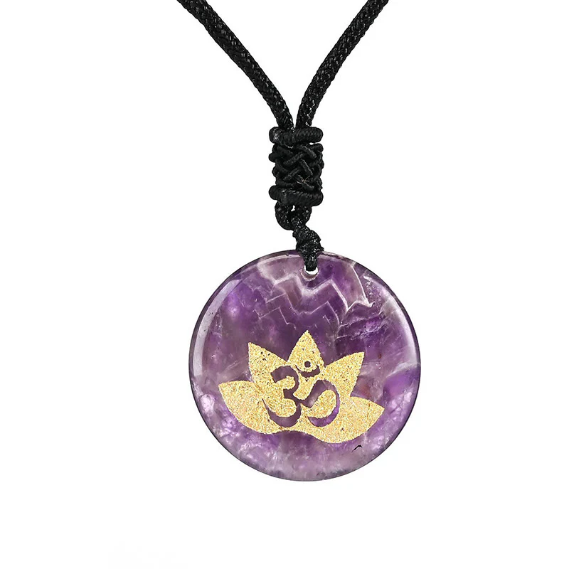 OM Lotus Symbol Various Crystal Amethyst Tiger Eye Healing Necklace Pendant
