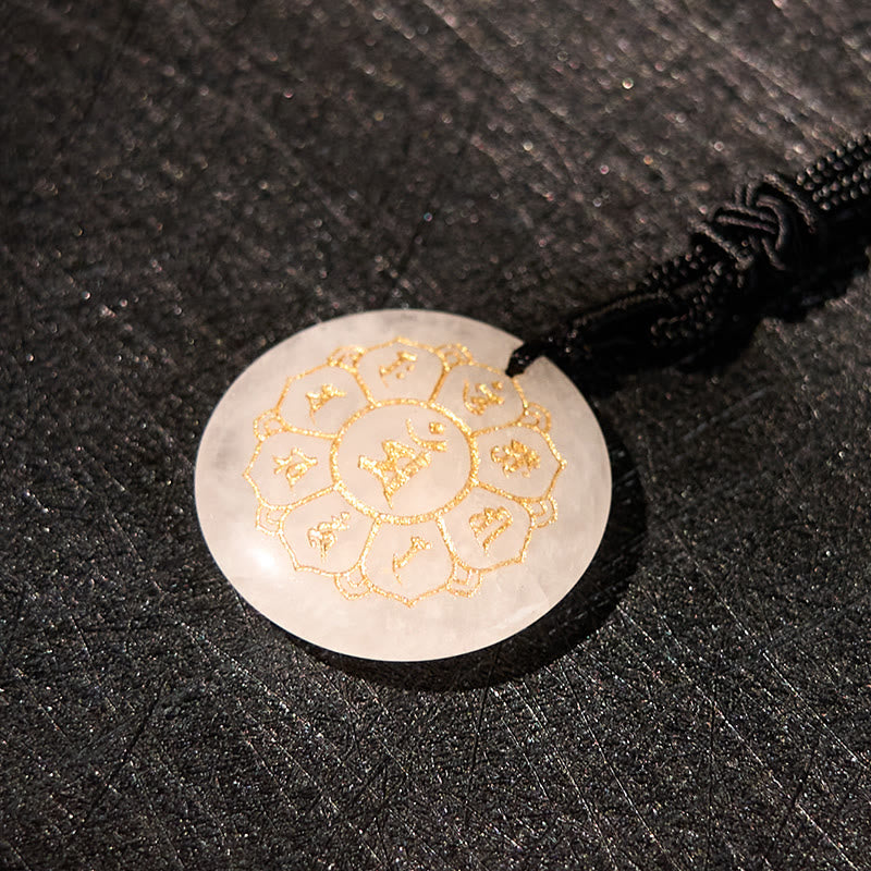 • Om Mani Padme Hum Natural Various Crystal Black Obsidian Strength Necklace Pendant