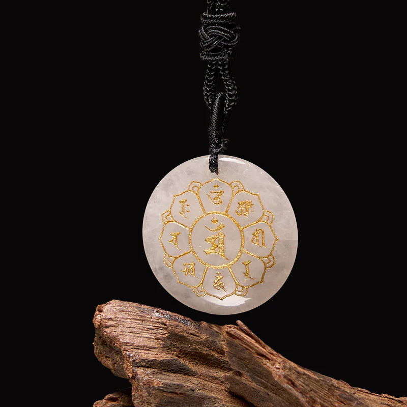 Om Mani Padme Hum Natural Various Crystal Black Obsidian Strength Necklace Pendant