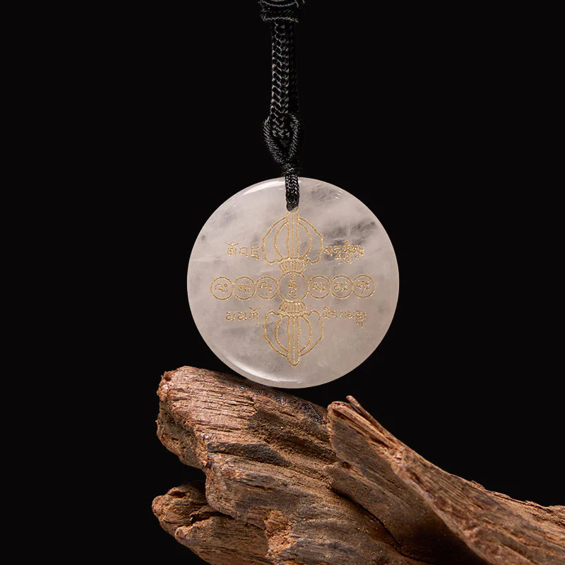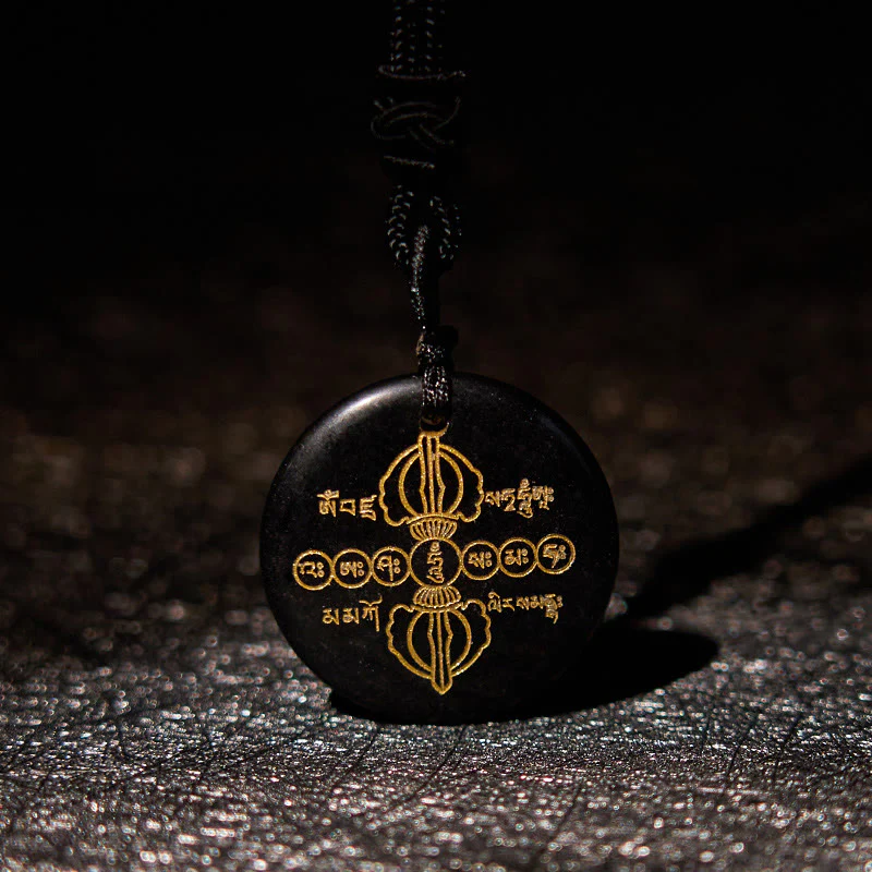 Vajra Dorje Sanskrit Pattern Natural Various Crystal Black Obsidian Fulfillment Necklace Pendant