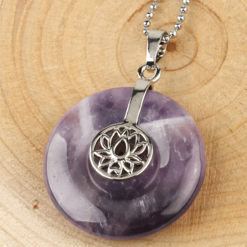 Various Crystal Amethyst Pink Crystal Lotus Healing Necklace Pendant