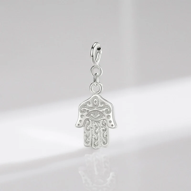 The Hamsa is an ancient amulet symbolizing divine protection. In all beliefs, it's a protective sign. The main function of the Hamsa hand is to safeguard the wearer from the evil eye. The eye within it repels negative forces. It brings its owner happiness, luck, health, and good fortune. The Hamsa hand can be worn with fingers up or down. When up, it's thought to protect the owner from negative thoughts and the evil eye. When down, it represents happiness, peace, and prosperity as it attracts positive things into life.
