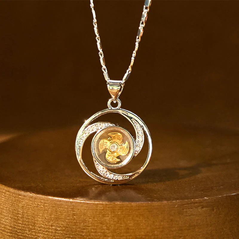 Gold-plated copper rotatable necklace pendant showcases a circular windmill design made of gold-plated copper. The rotatable part represents movement and advancement, and the delicate details add an air of elegance. This pendant is designed to draw in luck and success, combining aesthetic charm with meaningful symbolism, making it a considerate and spiritual accessory for anyone who wears it.💕