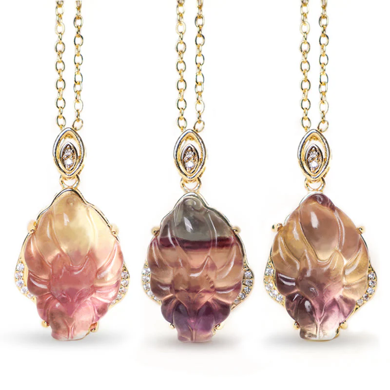 Home / Necklaces & Pendants / Natural Colorful Fluorite Nine-Tailed Fox Protection Necklace Pendant