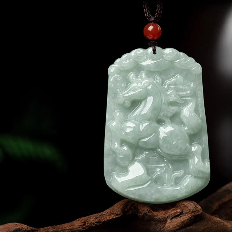 • Natural Jade 12 Chinese Zodiac Abundance Amulet Pendant Necklace
