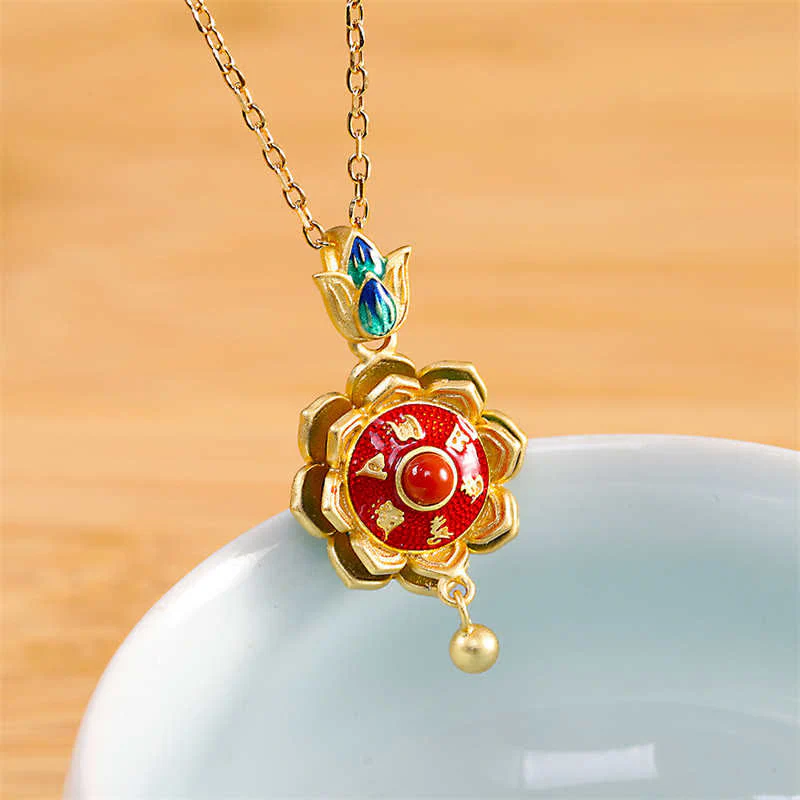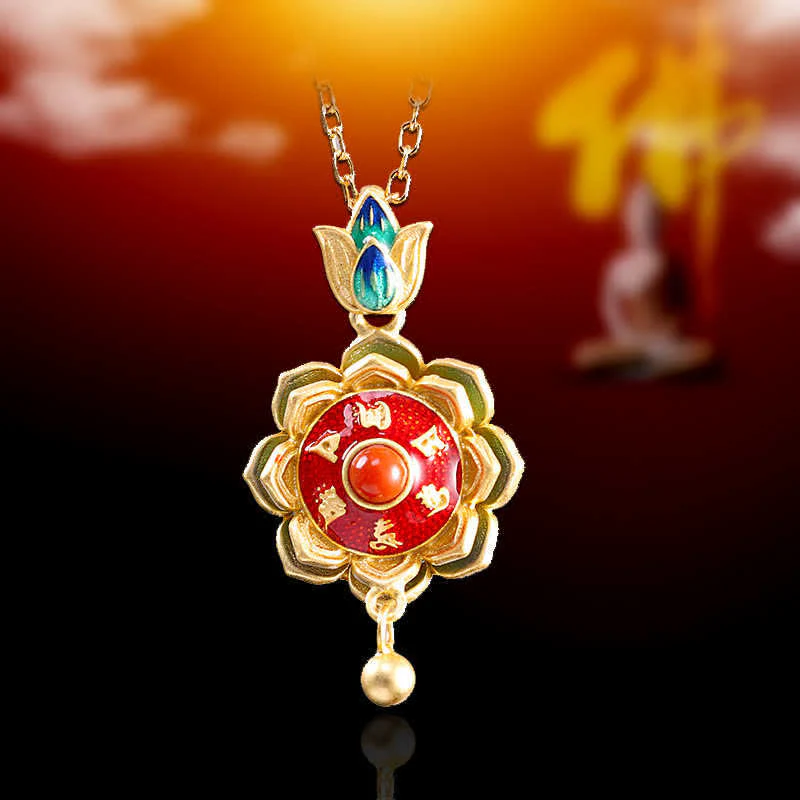 \nDiscover the transformative essence of this Tibet Lotus Prayer Wheel Red Agate Necklace. Meticulously crafted from 925 sterling silver, it symbolizes purity, rebirth, and strength. The lotus symbol and sacred chant offer enlightenment, and red agate fosters calmness and self - acceptance.\n