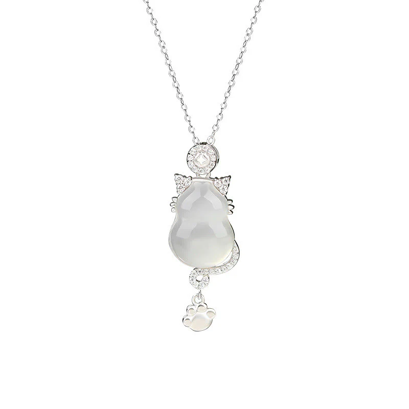 White Jade Gourd Cat Necklace Pendant showcases a charming white jade gourd pendant made with either 925 sterling silver or 14K gold. This captivating item represents protection and good luck, based on traditional symbolism. The gourd shape is thought to repel negative forces and create a feeling of security and comfort. It's perfect for those looking for a spiritual bond and a significant accessory.💕