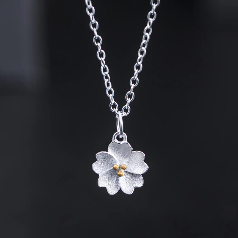 925 Sterling Silver Cherry Blossom Flower Blessing Necklace Pendant