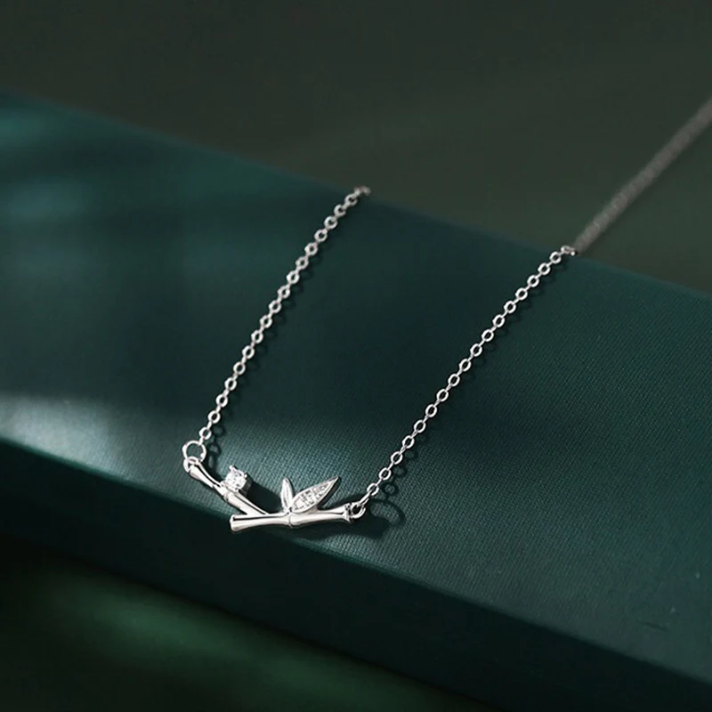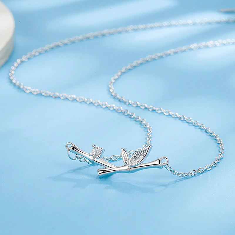 Home / Protection / Bamboo Leaf Design Copper Zircon Wealth Necklace Pendant