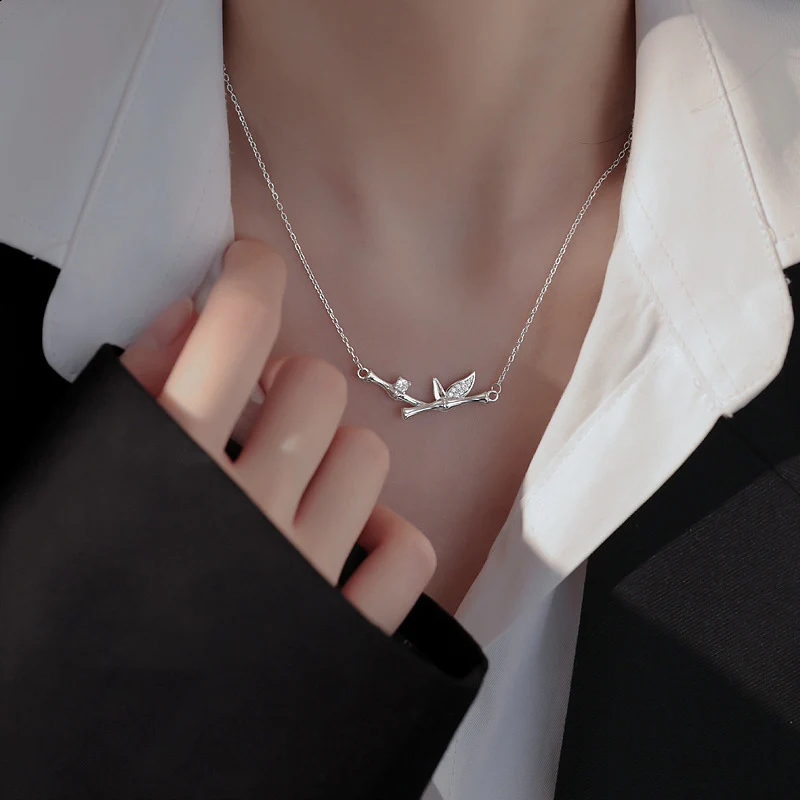A pendant combines the beauty of bamboo with the sparkle of zircon, crafted in copper to symbolize wealth and resilience. This necklace pendant, reflecting the enduring nature of bamboo and its association with prosperity, is a stylish accessory and a talisman for attracting wealth. Its elegant design makes it suitable for daily wear or special occasions, reminding the wearer of their strength and potential for growth.