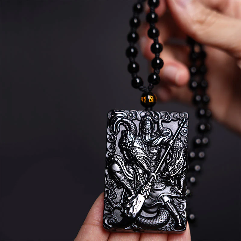 • Black Obsidian Engraved Strength Amulet Necklace Pendant