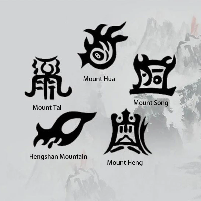 The front pattern of the pendant features diagrams related to the Five Sacred Mountains in Taoism.