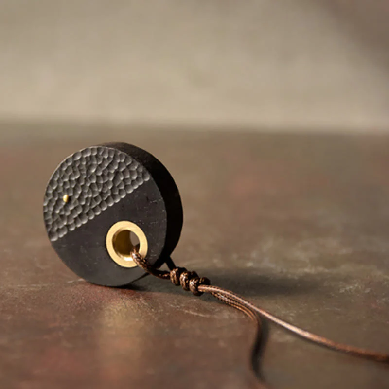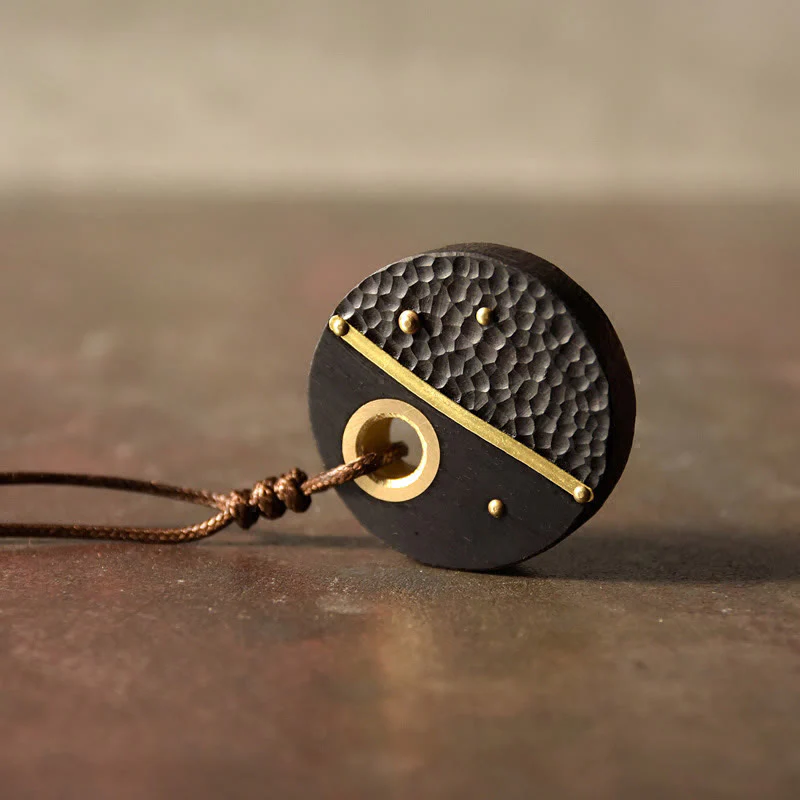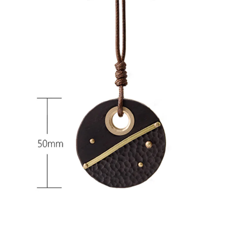 This handmade necklace features a round ebony wood and copper pendant, showcasing exquisite craftsmanship. Crafted from high - quality materials, it represents peace and positive energy. It's suitable for those in search of good fortune and meaningful transformation, perfect for daily wear or as a thoughtful present.