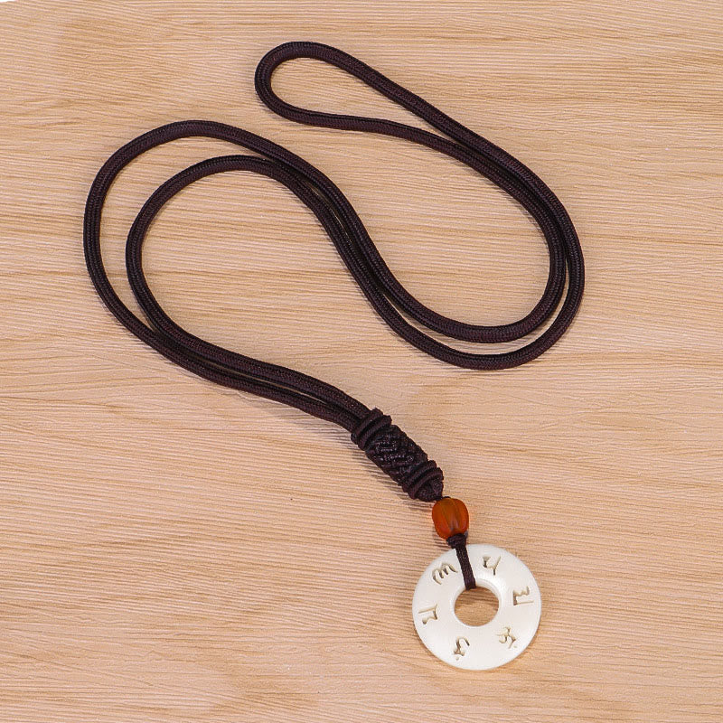 • Ivory Fruit Om Mani Padme Hum Engraved Protection Necklace Pendant