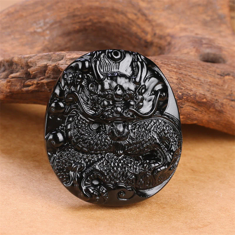 Home / Protection / Natural Black Obsidian Round Dragon Carved Protection Necklace Pendant