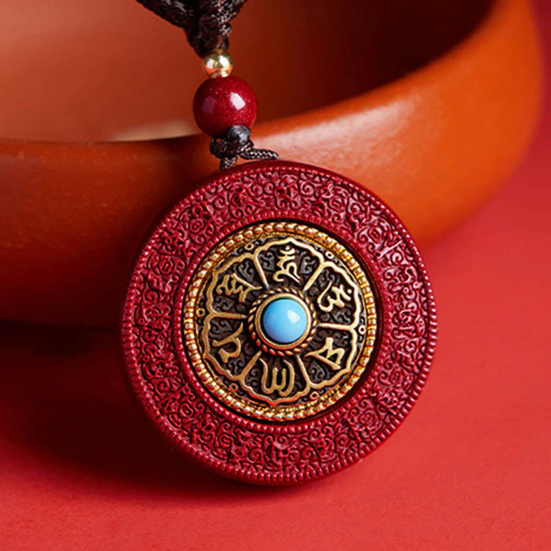 • Natural Cinnabar Om Mani Padme Hum Rotatable Scripture Yin Yang Pattern Blessing Necklace Pendant