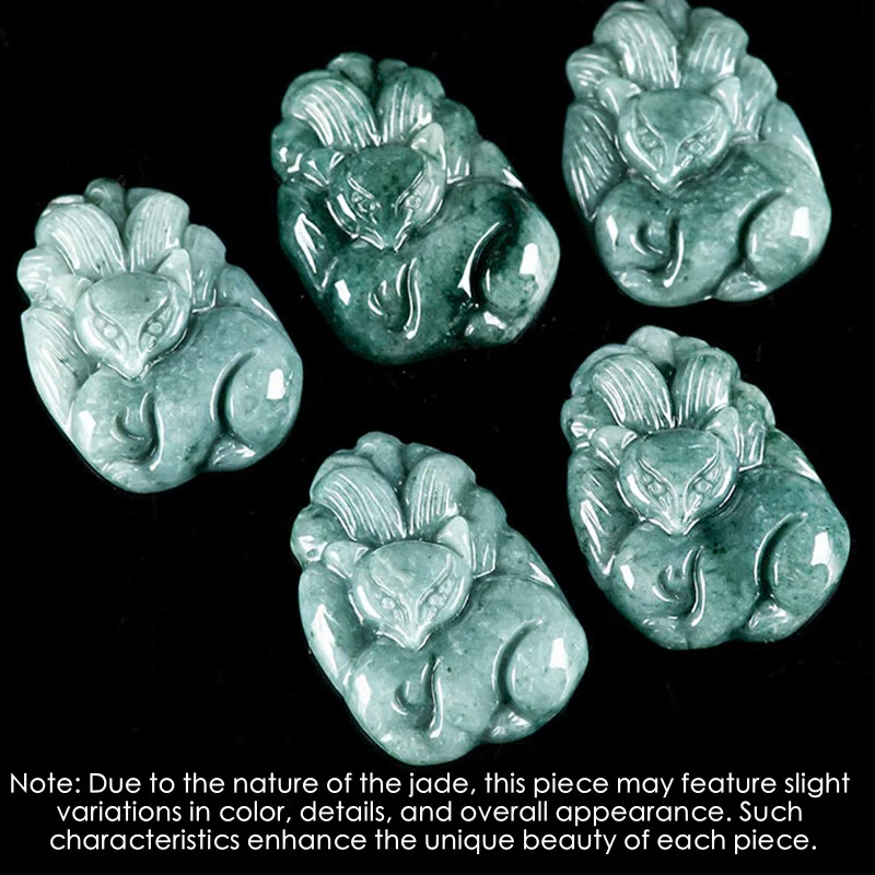 • Natural Green Jade Nine-Tailed Fox Engraved Prosperity Necklace Pendant