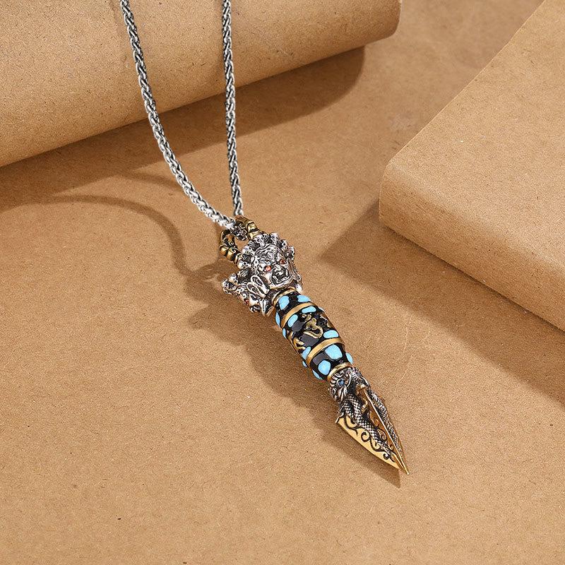Experience the profound cultural heritage with this 'Dzi Bead Pendant.' Infused with the sacred \"Om Mani Padme Hum\" mantra and the powerful Dorje Vajra pattern, this rotatable pendant symbolizes wealth and spirituality.