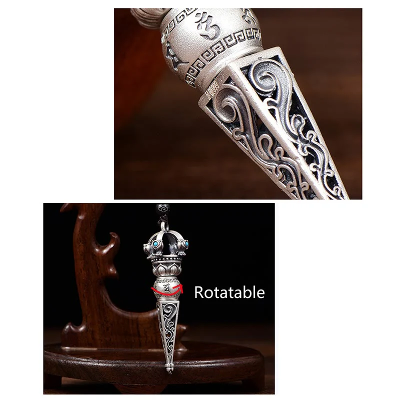 Home / Protection / Tibetan Om Mani Padme Hum Rotatable Wisdom Necklace Pendant