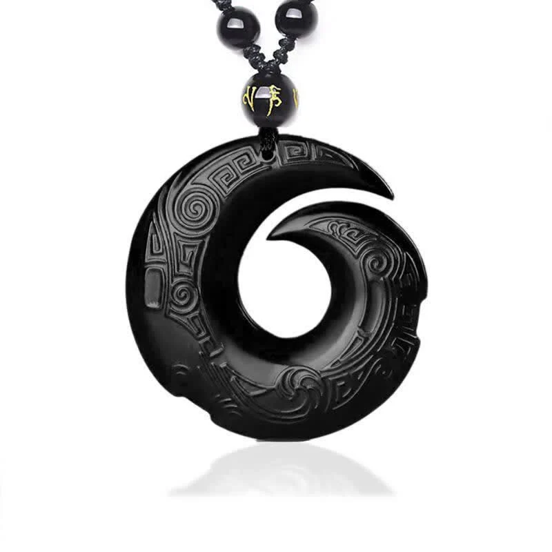 Natural Black Obsidian and Ice Obsidian Strength Necklace Pendant