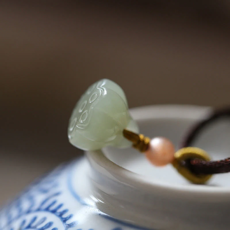 • Natural Round Jade Peace Buckle Lotus Abundance String Necklace Pendant