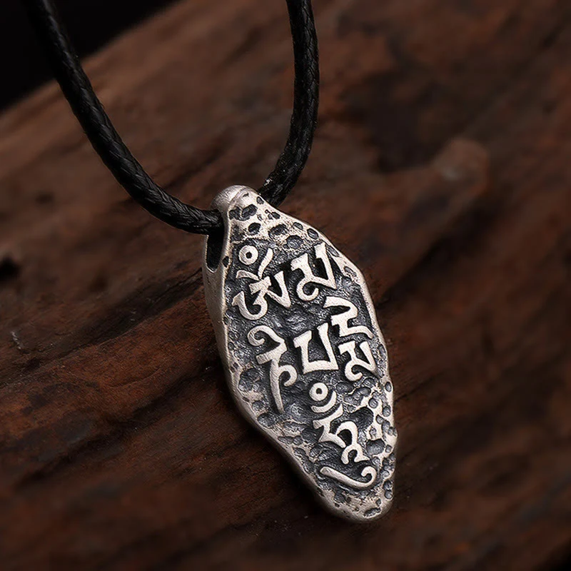 Tibetan 925 Sterling Silver Om Mani Padme Hum Dorje Vajra Engraved Necklace Pendant