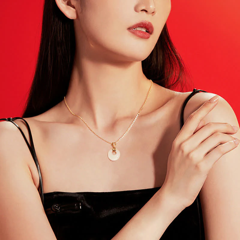 • White Jade Peace Buckle Luck Necklace Pendant