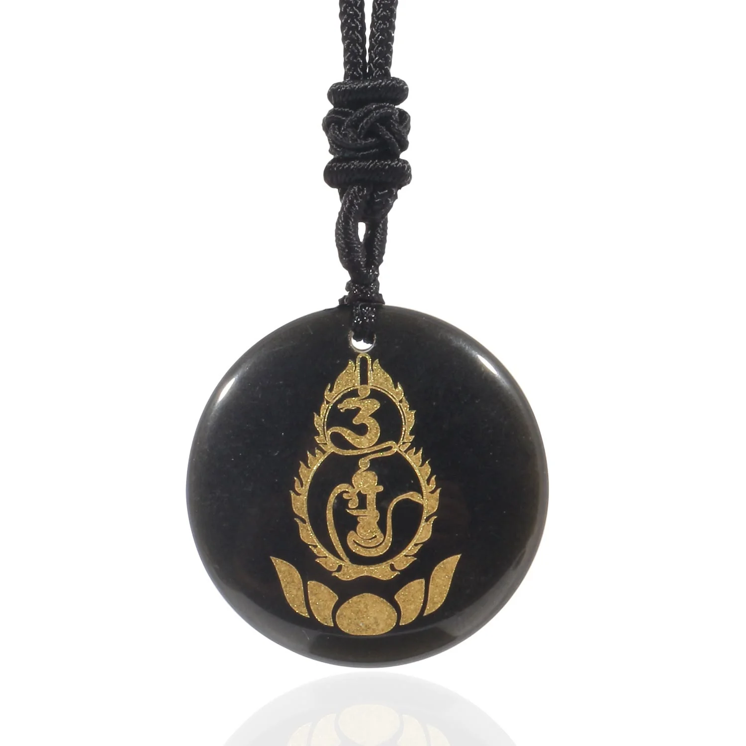 • Gourd Lotus Pedestal Pattern Mantra Natural Various Crystal Black Obsidian Fulfilment Necklace Pendant