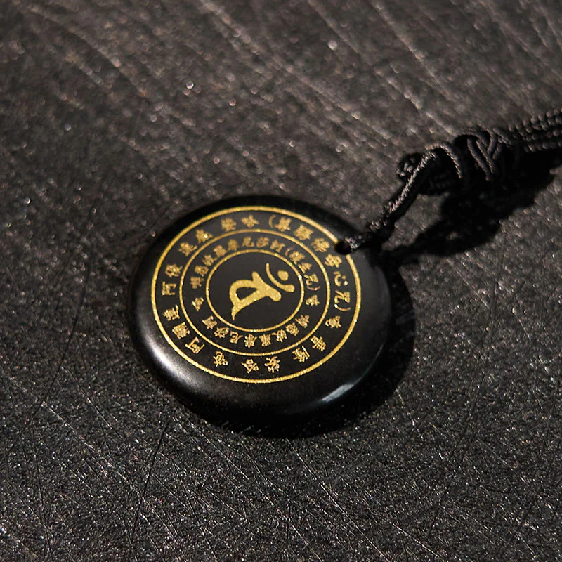 Sanskrit Mantra Various Crystal Black Obsidian Green Aventurine Strength Necklace Pendant