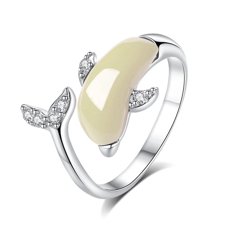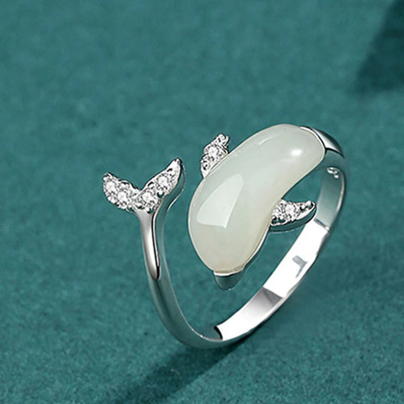 Home / Ring / 925 Sterling Silver Cute Dolphin Jade Red Agate Luck Necklace Pendant Ring Earrings Set