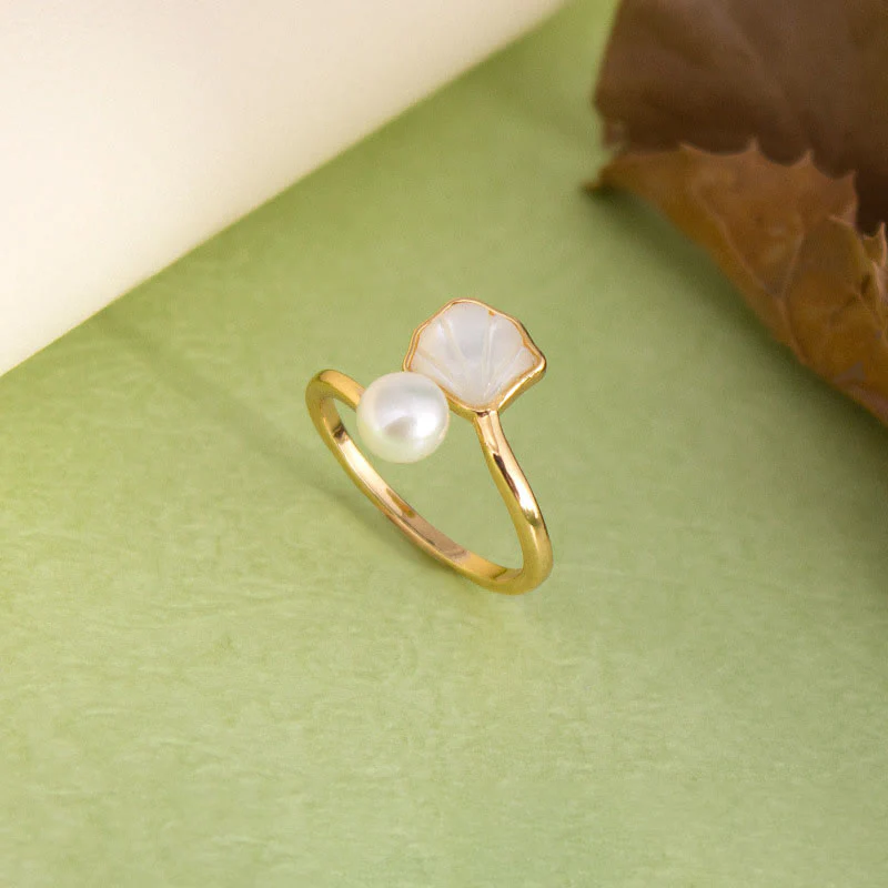 Home / Ring / Ginkgo Tridacna Stone Pearl Bead Metal Blessing Jewelry Set